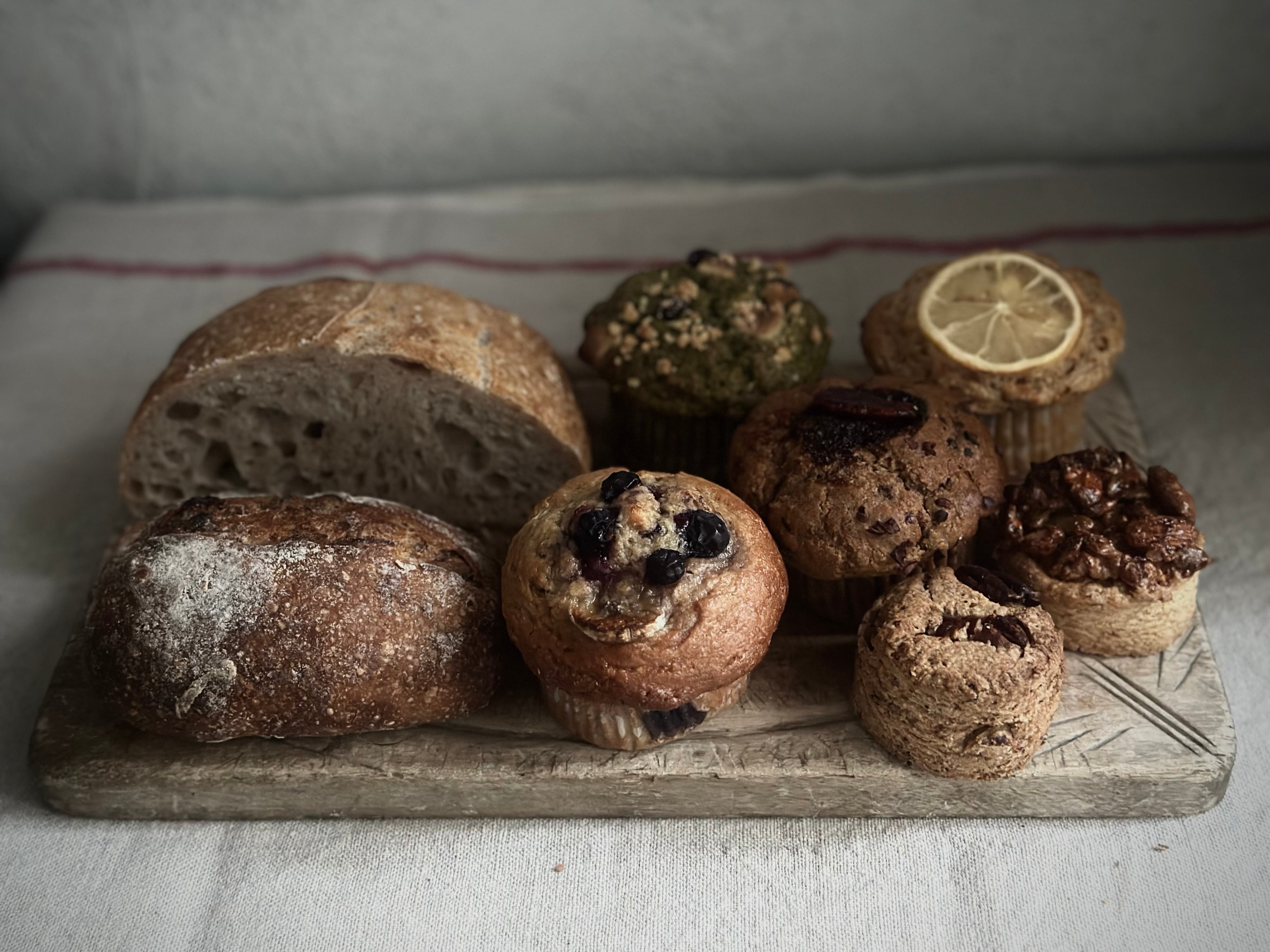 お店で販売しているマフィンやスコーン、パンが少し余ったときに、ランダムに詰め合わせてお送りします。