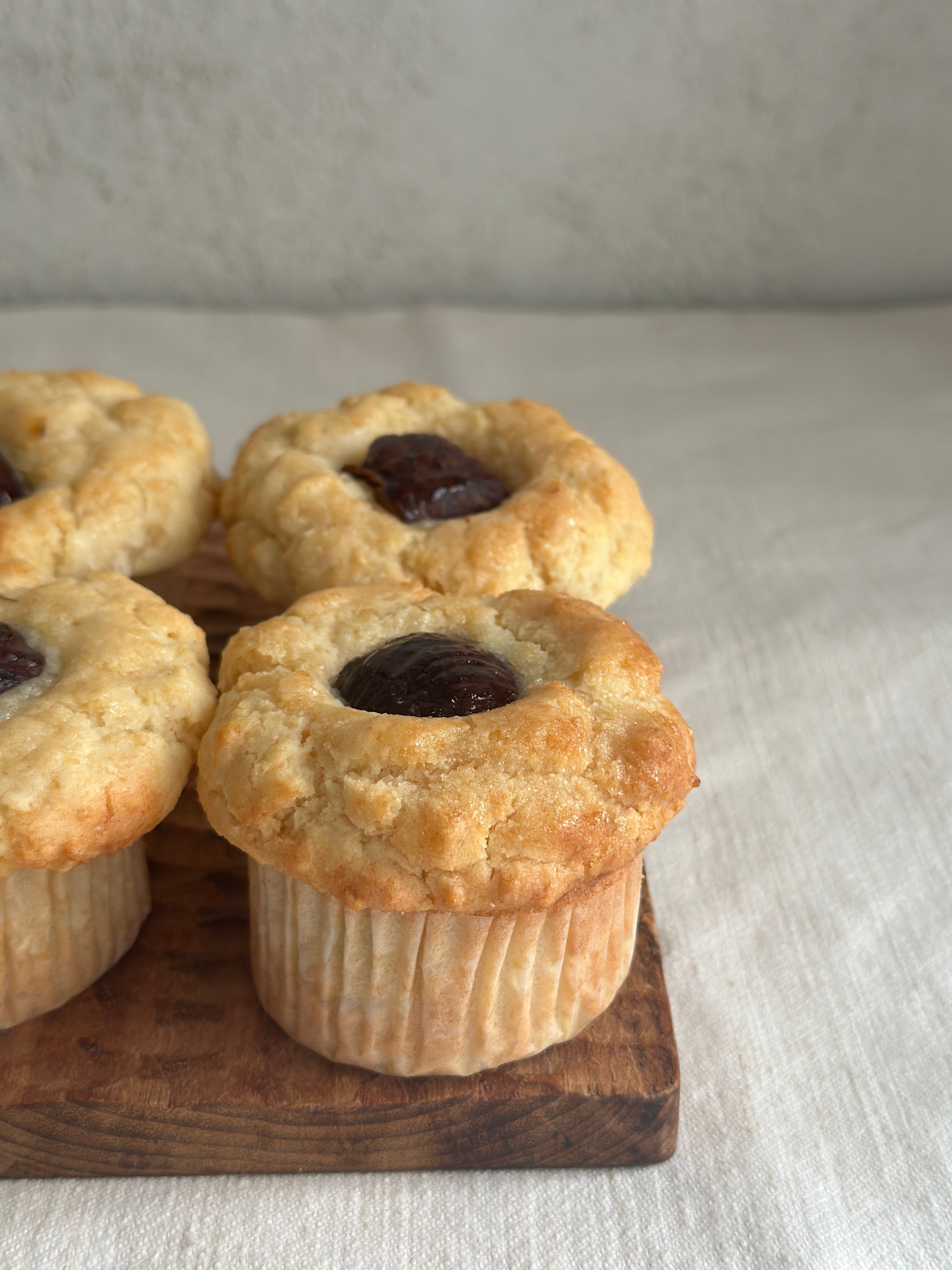 自家製の栗の渋皮煮にラム酒を加えたヴィーガン&グルテンフリーマフィン。