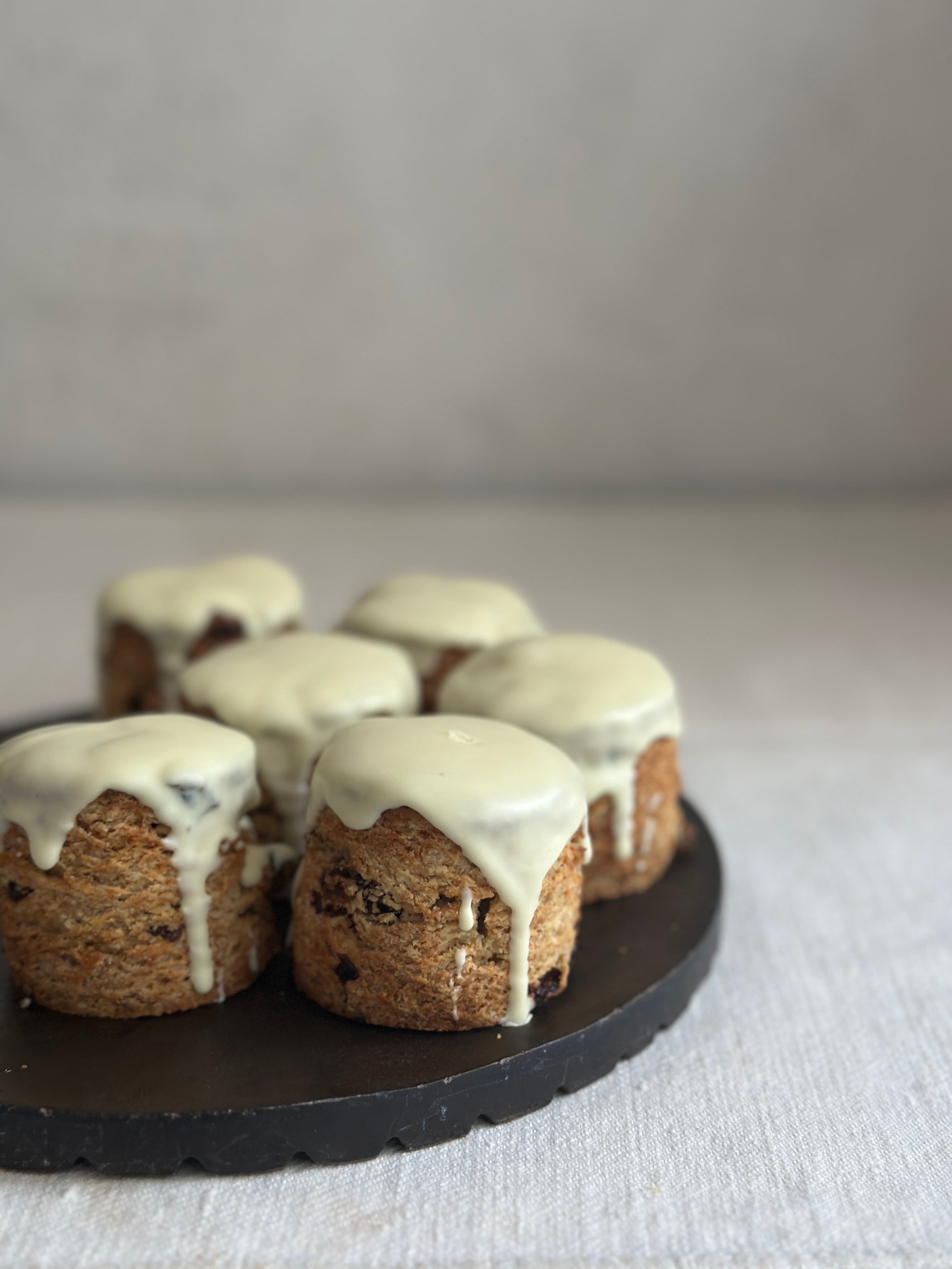 じっくりラム酒に漬け込んだレーズンを、ざっくり食感の全粒粉スコーンにたっぷり混ぜ込みました。